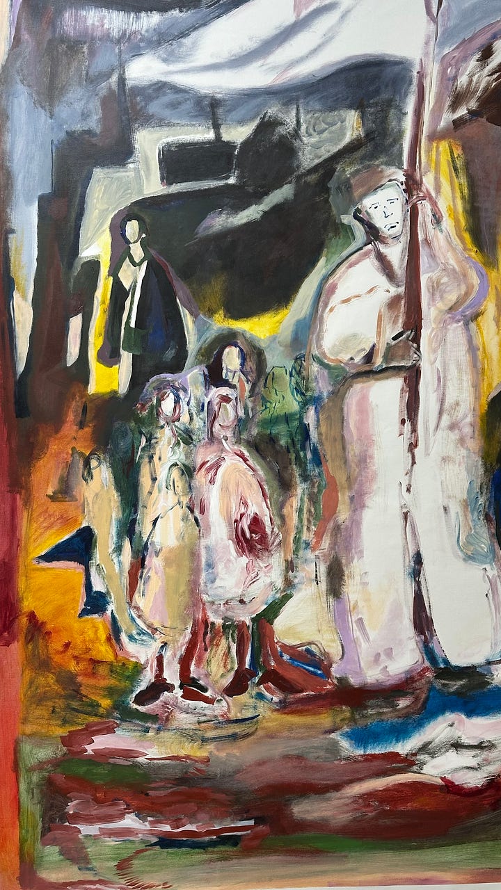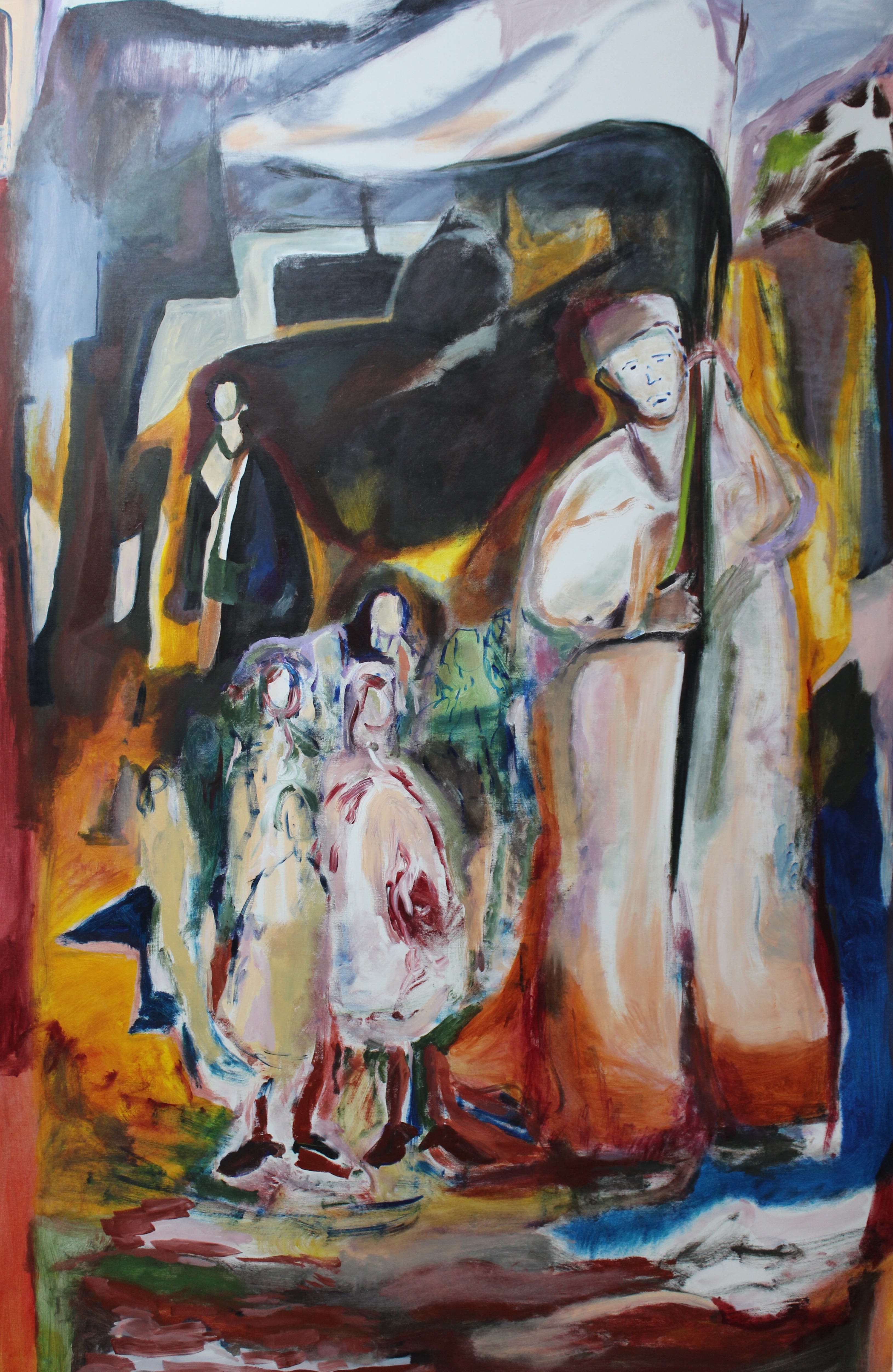 Ubba with Orange Skies - working title. I love the masjid in the background, the fire-yellow sky, and the way the colours sit and bleed into one another, almost like watercolour.